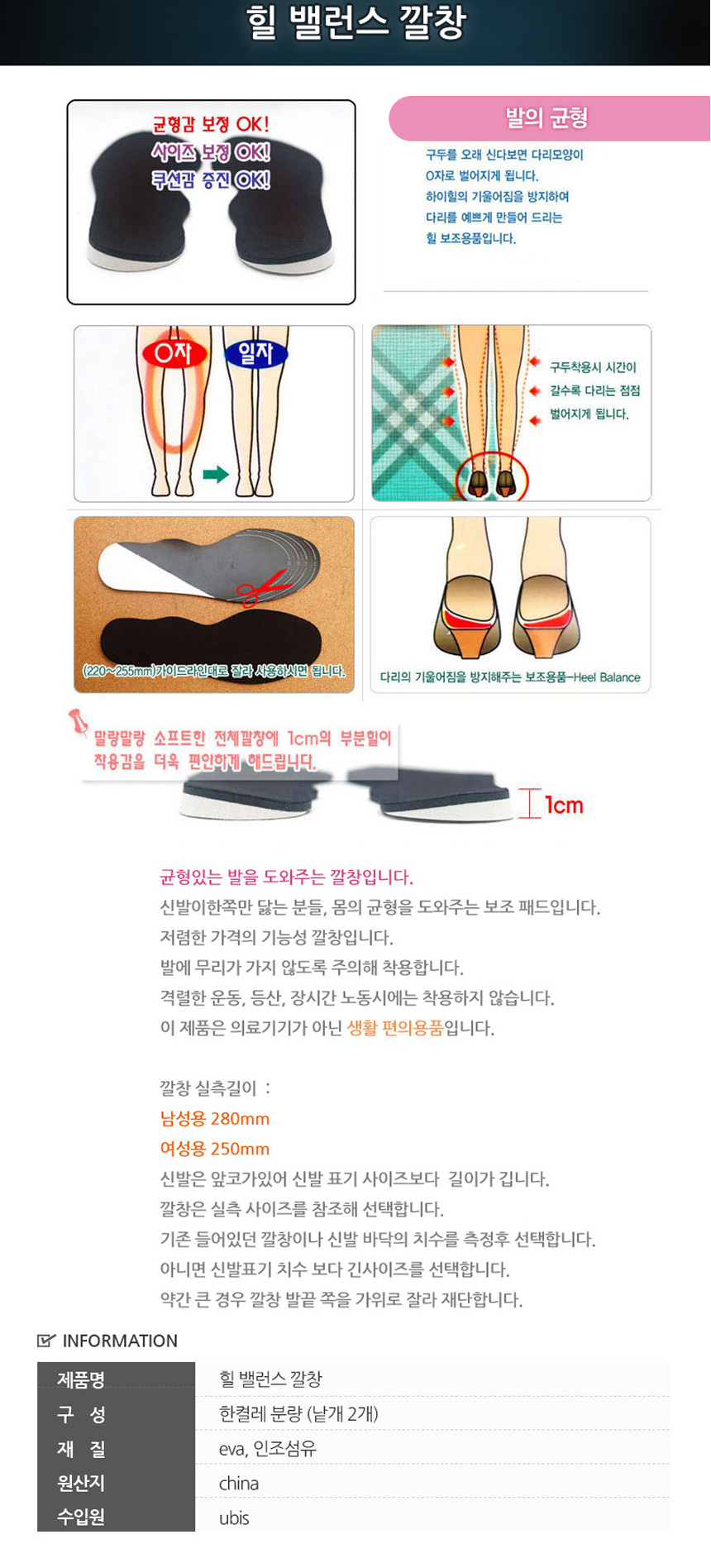 힐 밸런스 깔창 /발균형 기능성 깔창