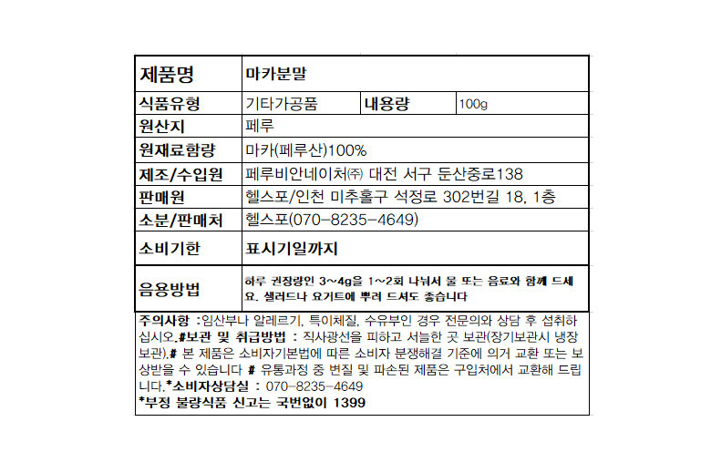 산해랑 페루산 마카분말 100g