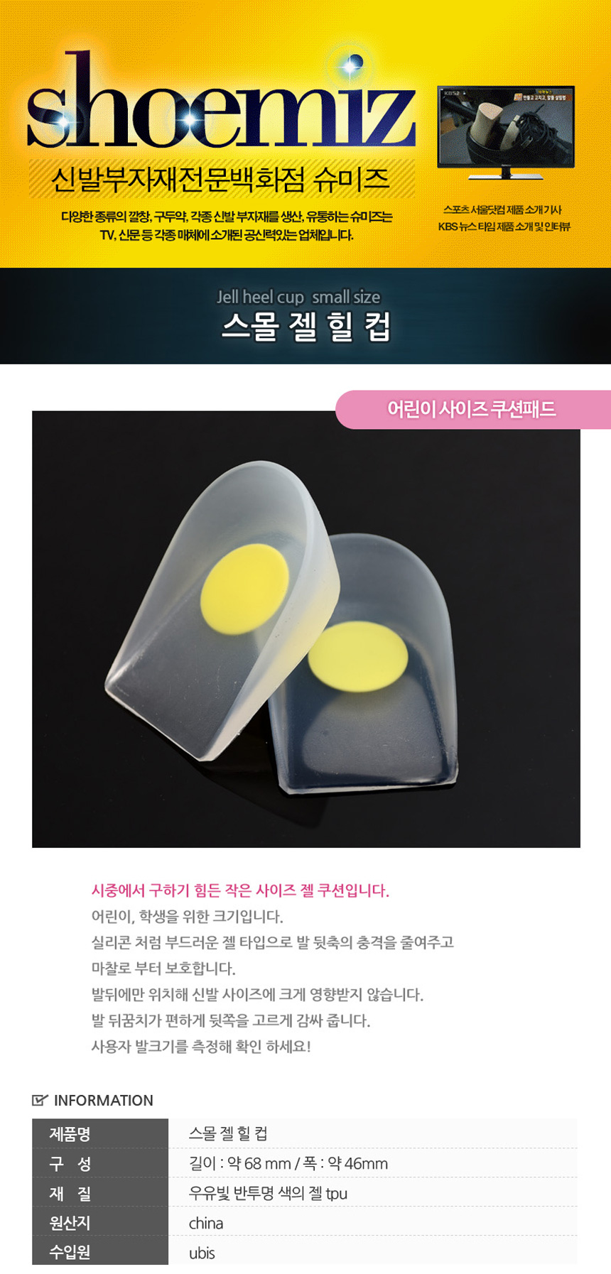 스몰 젤 힐 컵 /어린이 작은 쿠션패드 하프솔 깔창