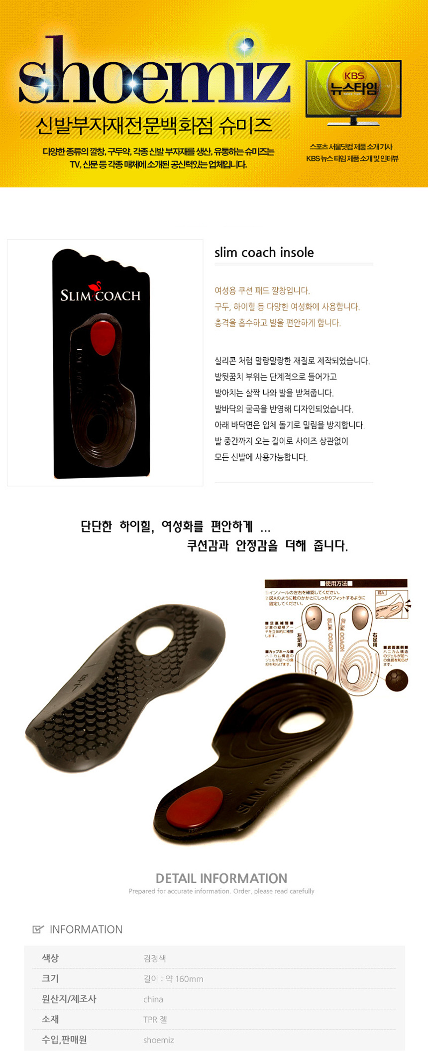 슬림코치 /여성화 쿠션패드