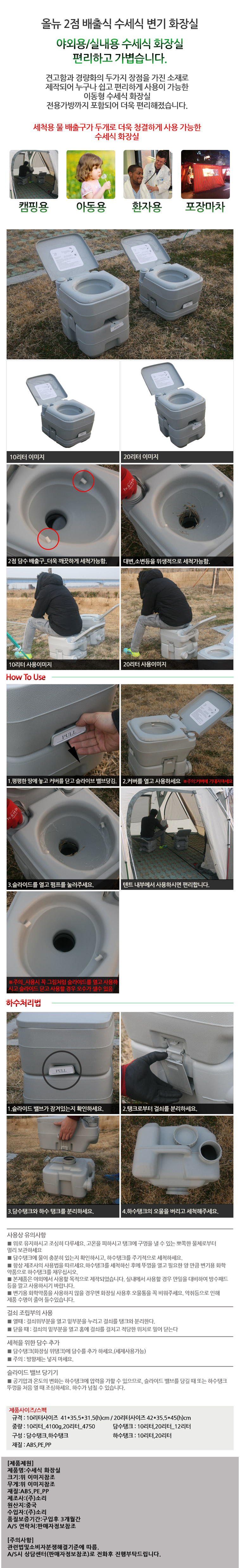 캠핑문 덤핑처리 올뉴 2점 배출식 수세식 변기 화장실20리터